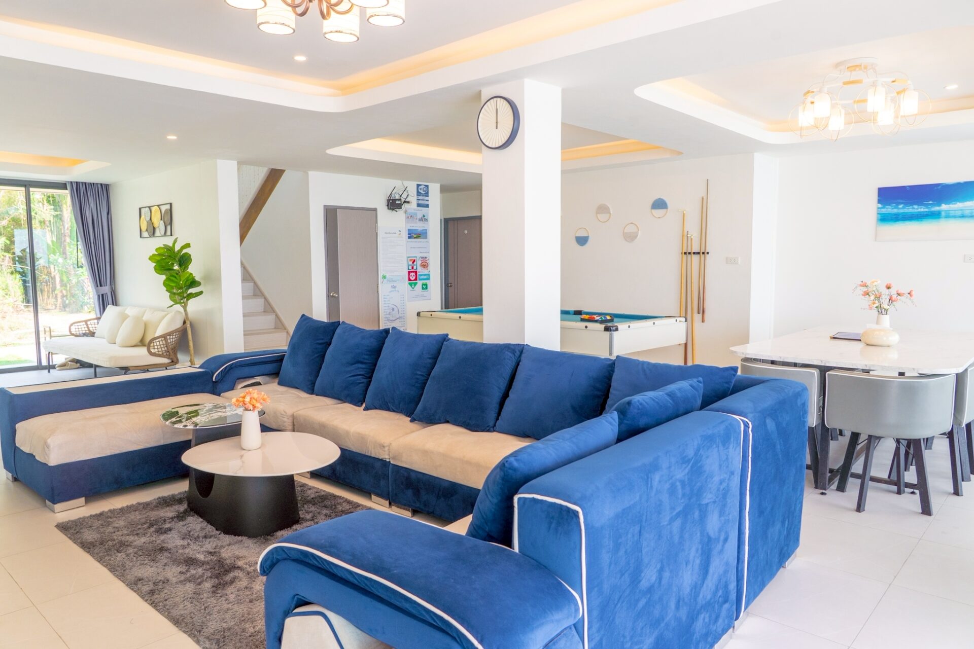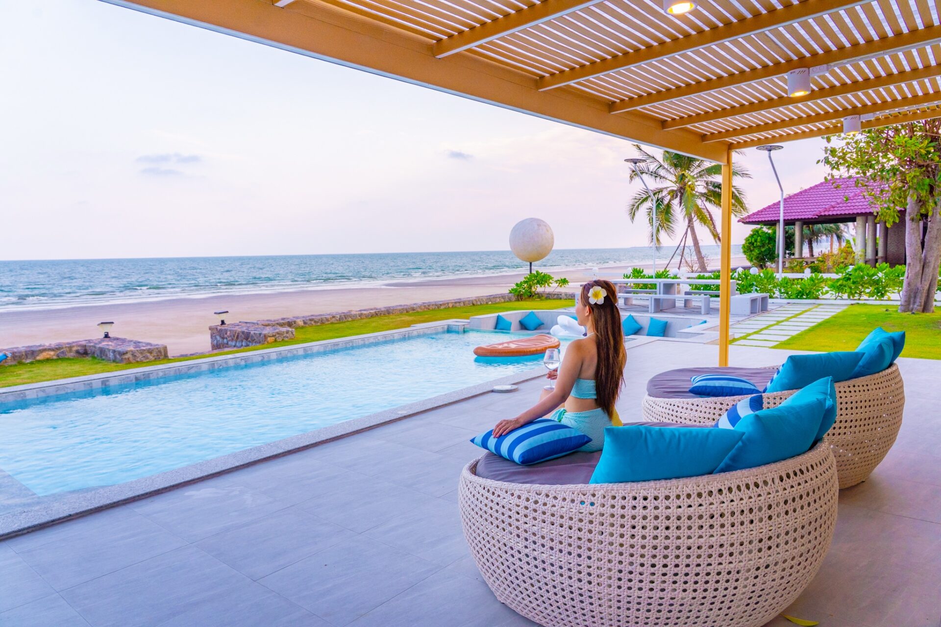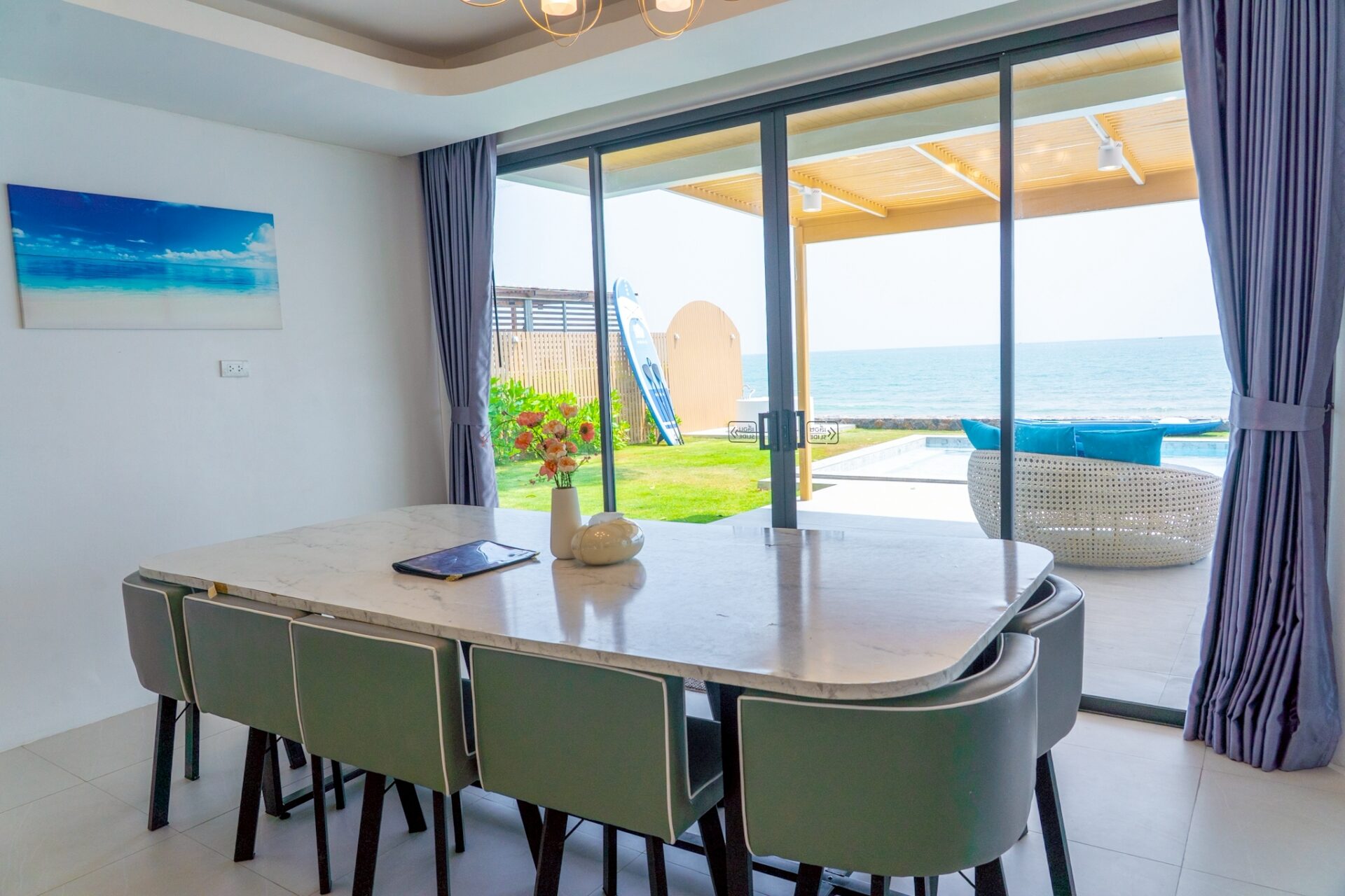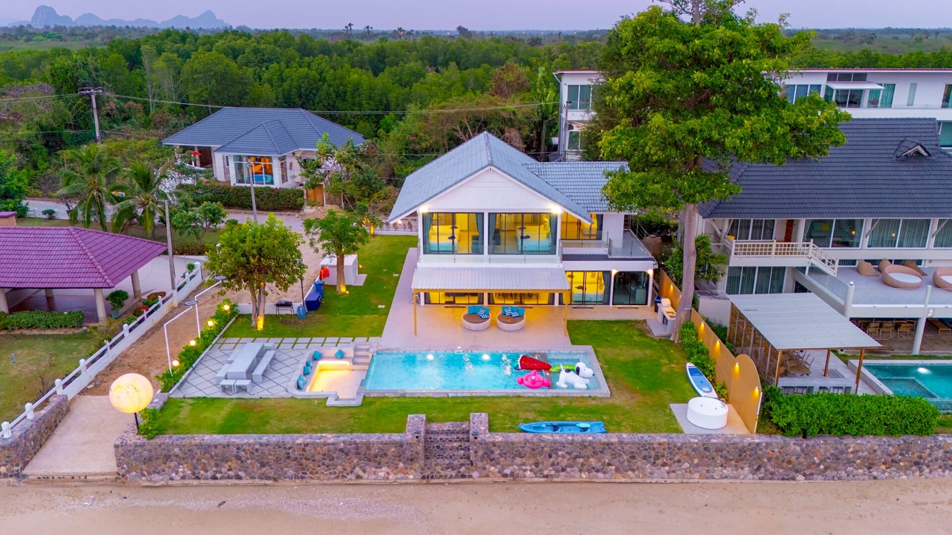 - There is a beach in front of the villa. The tide follows seasonal patterns, and during low tide, the beach will be accessible.