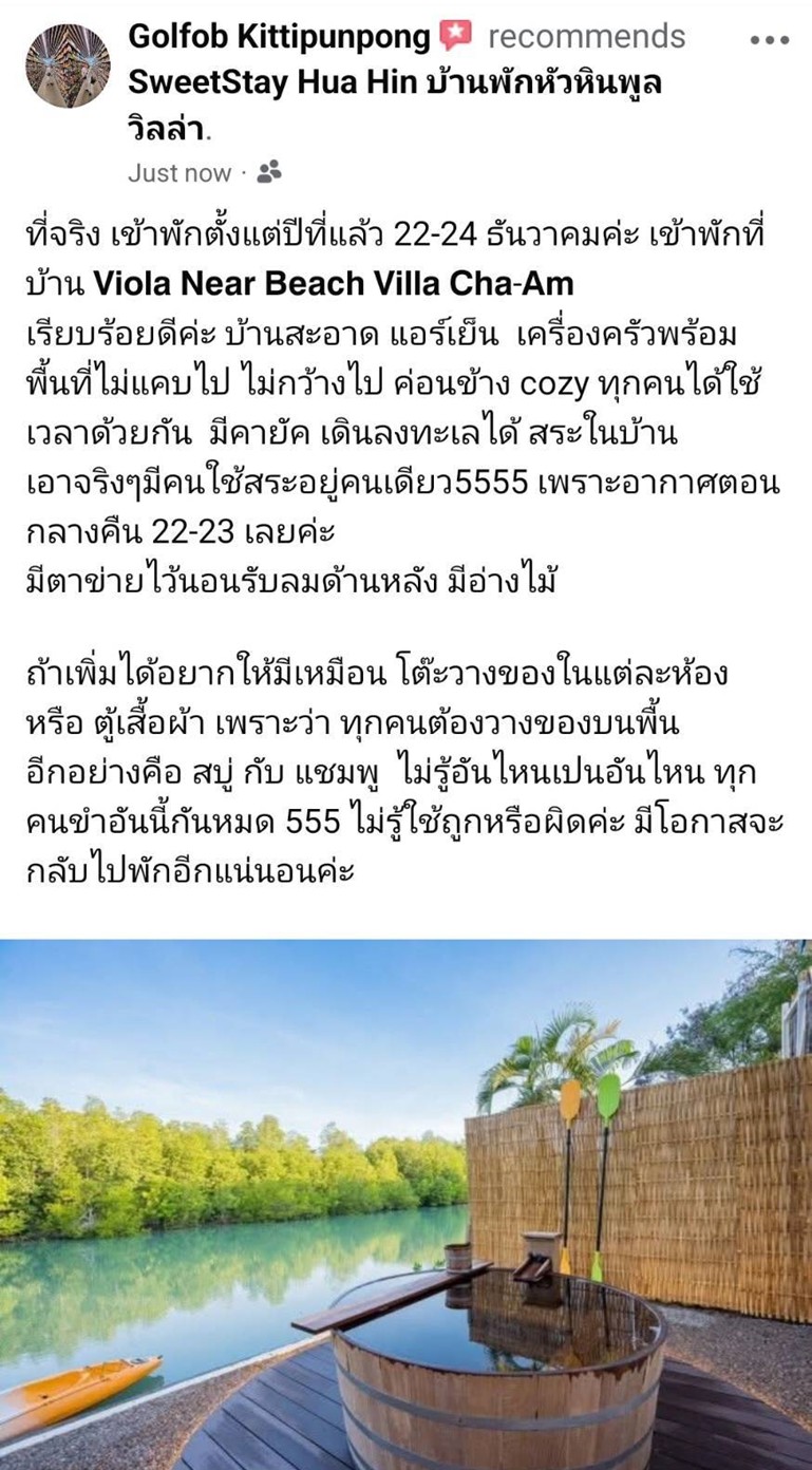 SweetStay Hua Hinวิลล่าเดินไปทะเลได้ เพียง 10 เมตร ข้างหลังบ้านเป็นทะเลสาบ